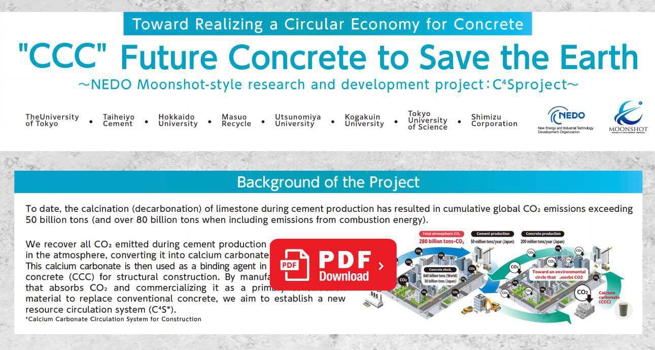 *Calcium Carbonate Circulation System for Construction *地球環境再生のために、持続可能な資源循環の実現による、地球温暖化問題の解決(Cool Earth)を目指す。